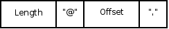 The length is written first, followed by an "at" character (ASCII 0x40), then the offset, followed by a comma (ASCII 0x2c).