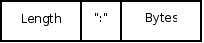 The length is written first, followed by a colon character (ASCII 0x3a), followed by the bytes of the literal.